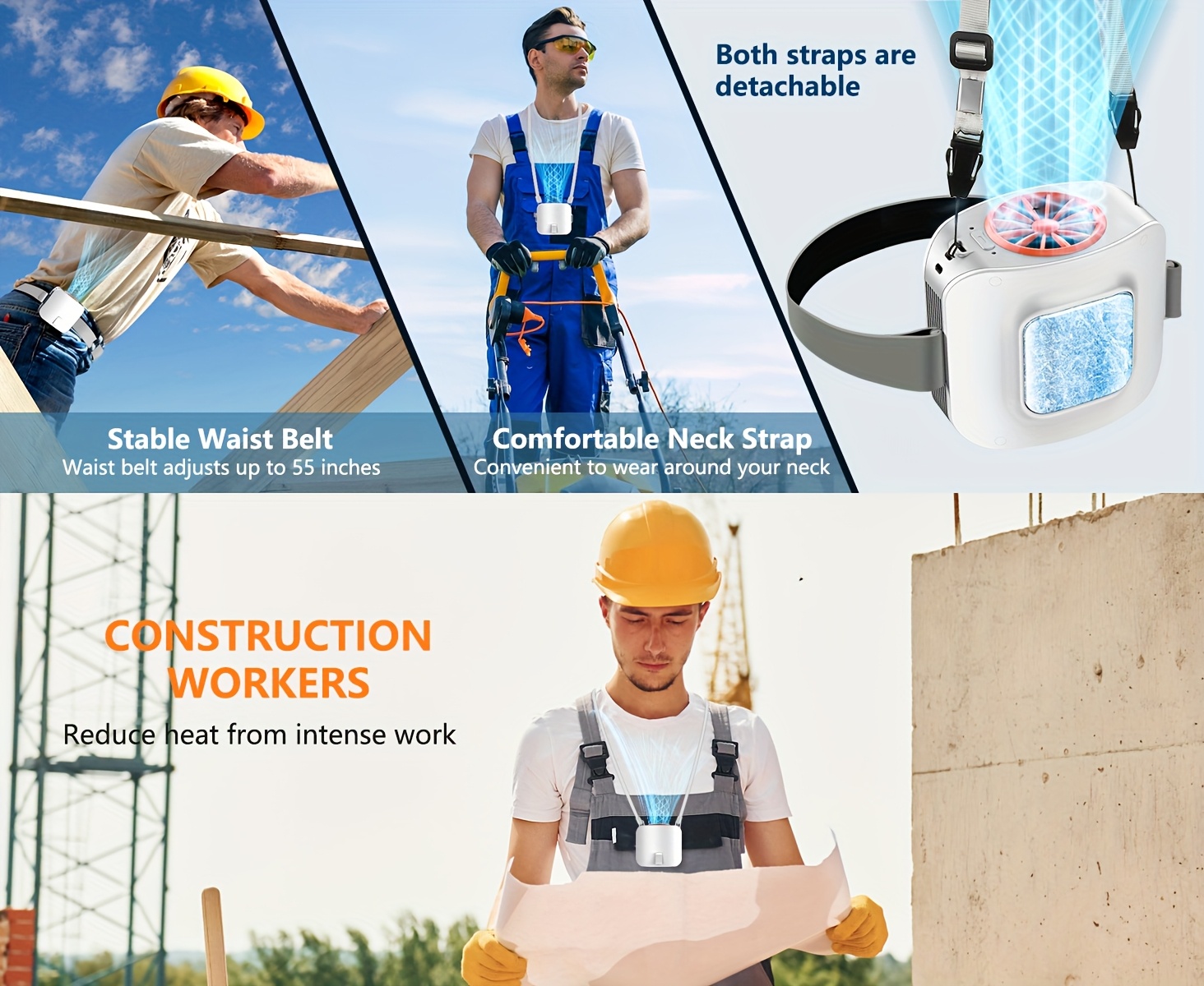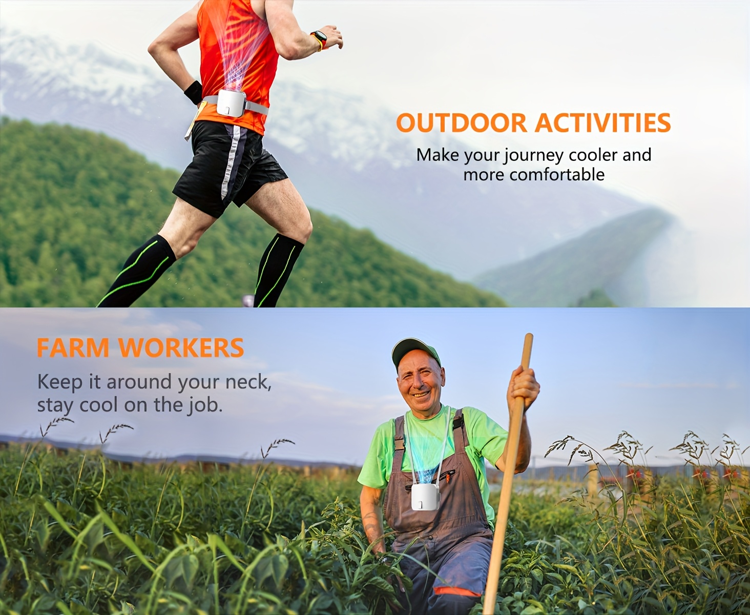 Enhanced Stability with Dual Straps – Includes two detachable straps for versatile wear: a neck strap for hands-free cooling as a neck fan, and a waist strap to function as a waist fan. The adjustable waist strap extends up to 55 inches, accommodating different body types. Compared to traditional clip-on fans, this design offers greater stability and flexibility for all-day wear.