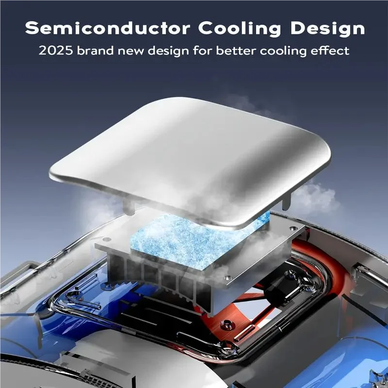 Advanced Semiconductor Cooling – 2025 all-new design featuring a built-in semiconductor cooling plate in the fan’s core. Once activated, this plate rapidly cools down, offering two cooling modes: strong and mild. When in contact with the Light Beige, it delivers an instant icy sensation. Paired with the fan, it quickly reduces body temperature, keeping you cool in extreme heat.