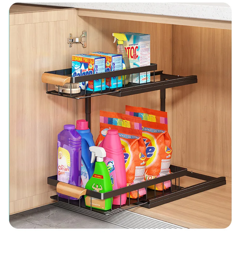 With its innovative design,you can maximize your undersink organizers storage space and easily organize all your cleaning supplies,tools,and other essentials.