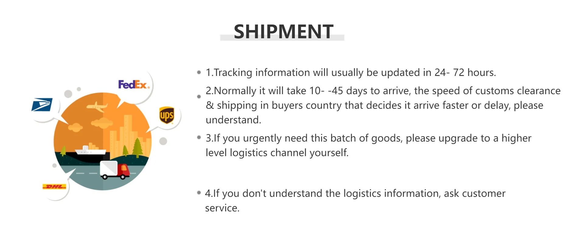 You may chat with us for any questions via TradeManager, we will respond you right way, If we are not online, please e-mail us, we will get back to you within 24 hours.