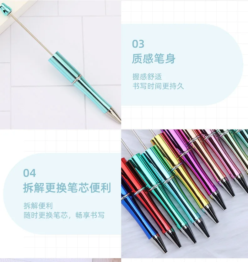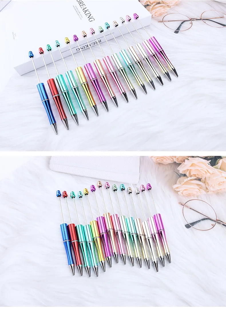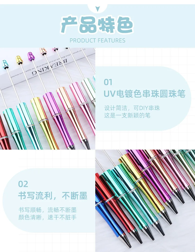50pcs Hot Selling UV Electroplated Beaded Pen DIY Creative Plastic Beadable Ballpoint Pens Gradient Gift Pen Kawaii Stationery