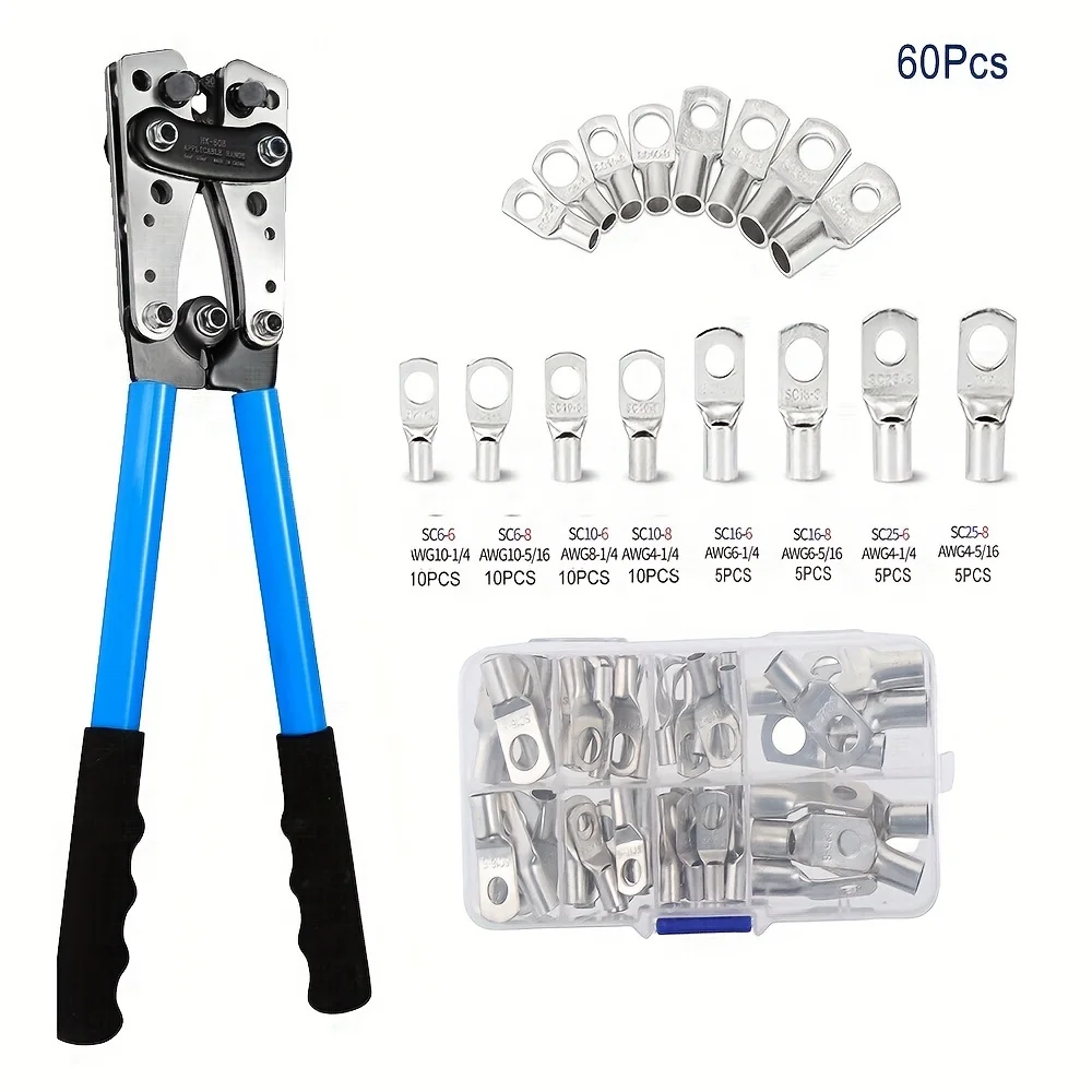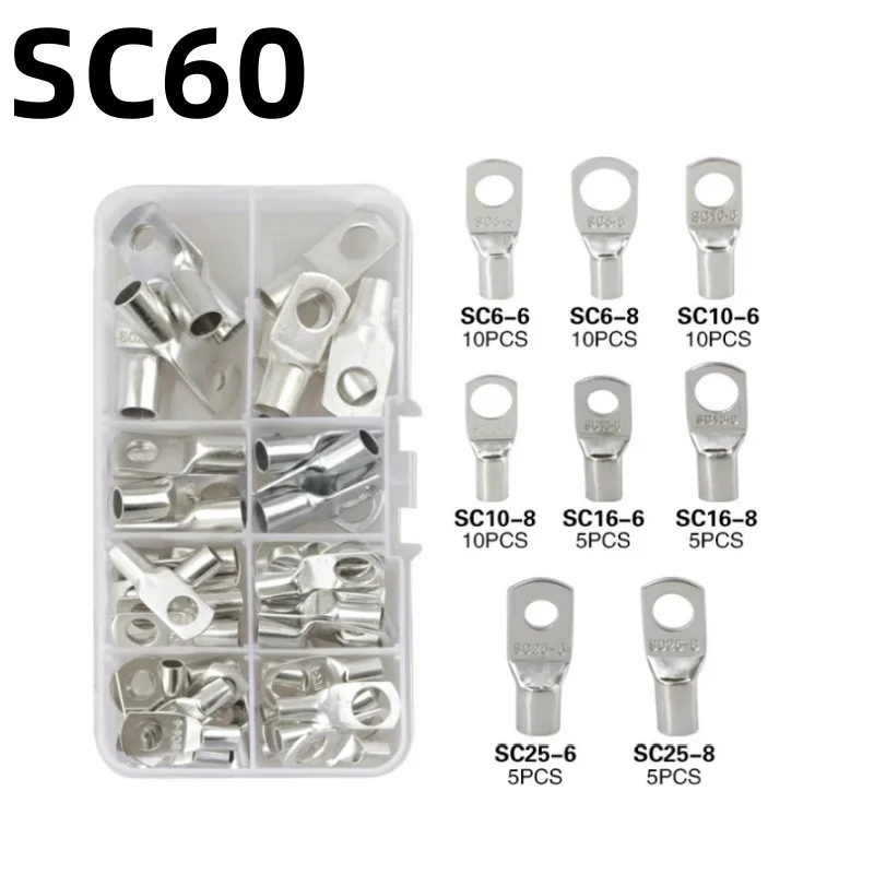60pcs Assortment Car Auto Copper Ring Terminal Wire Crimp Connector Bare Cable Battery Terminals Soldered Connectors Kit HX-50B