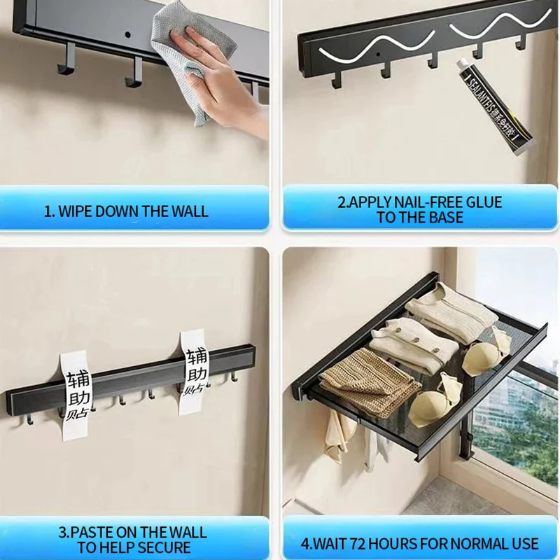 Balcony Drying Racks Retractable Drying Net Foldable Multifunctional Stainless Steel Sock Wall Shelf Bathroom Portable Organizer