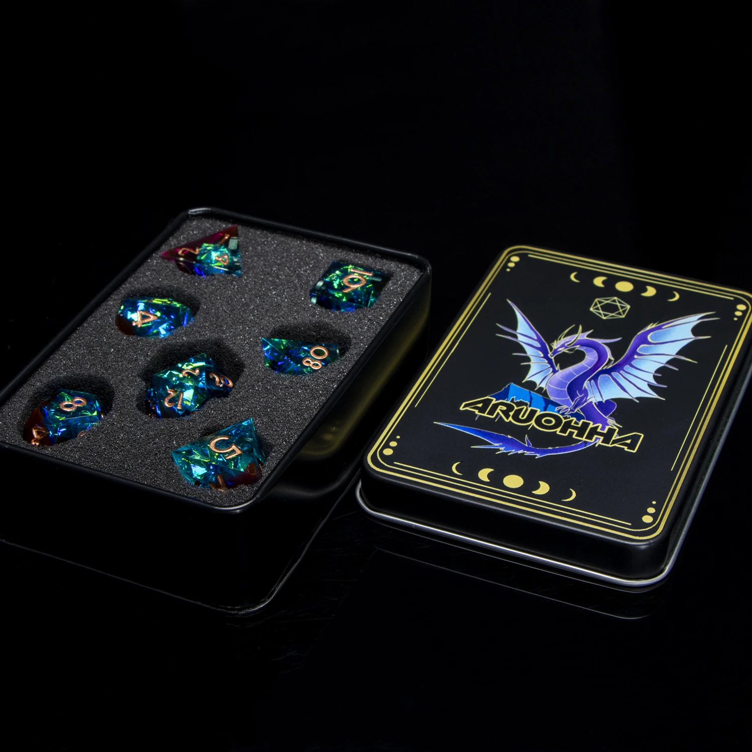 D20 DND Resin Dice Set D&D D6 Sharp Edges Dice Dungeon and Dragon Role Playing Game RPG Polyhedral Dice D20 D12 D10 D8 D6 D4