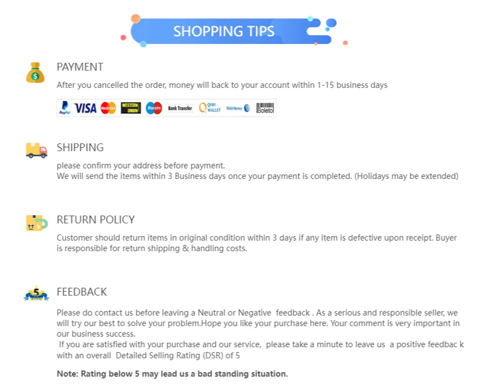 If you are not satisfied with the items you ordered, please contact us before leaving negative feedback.
