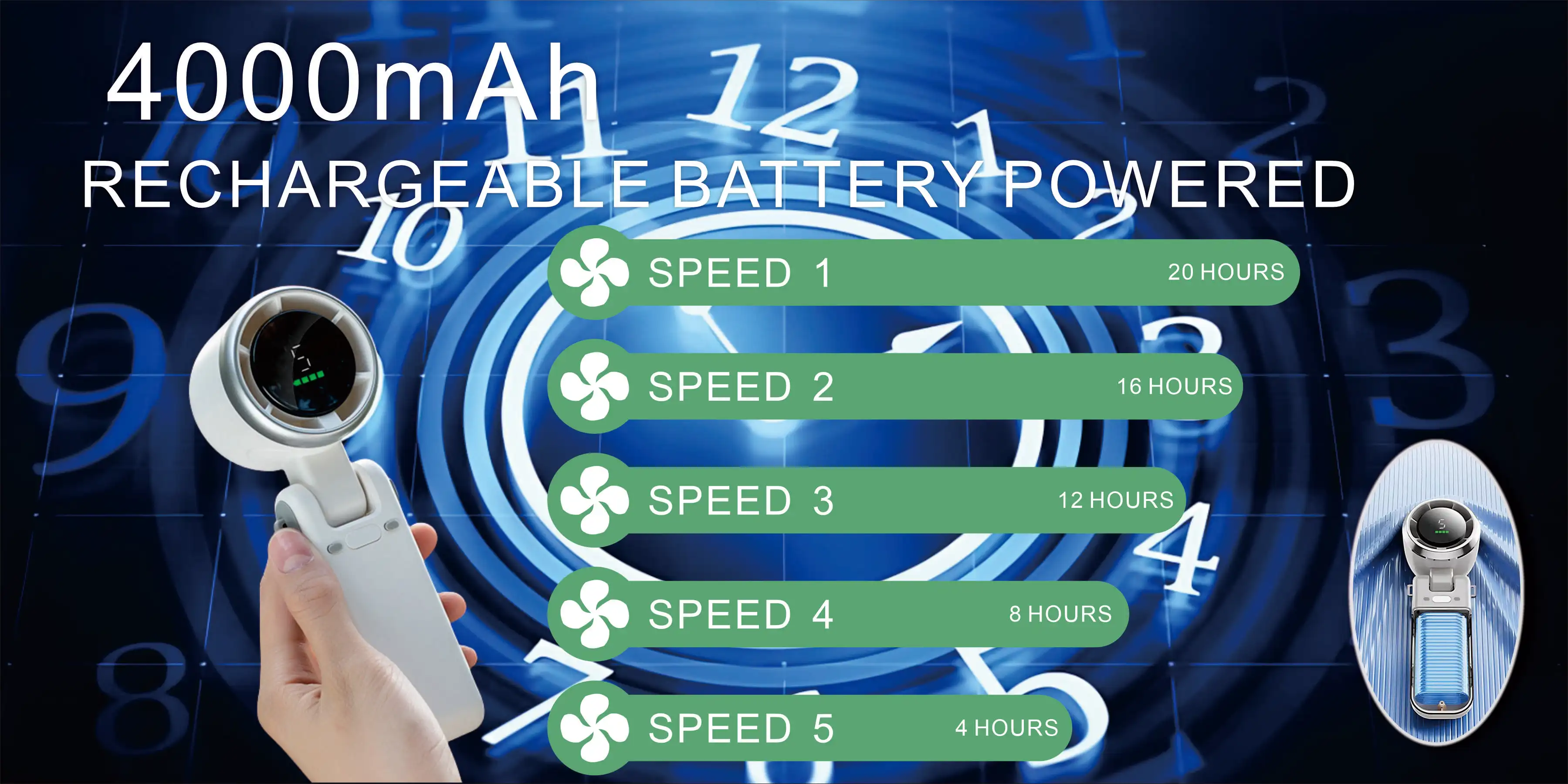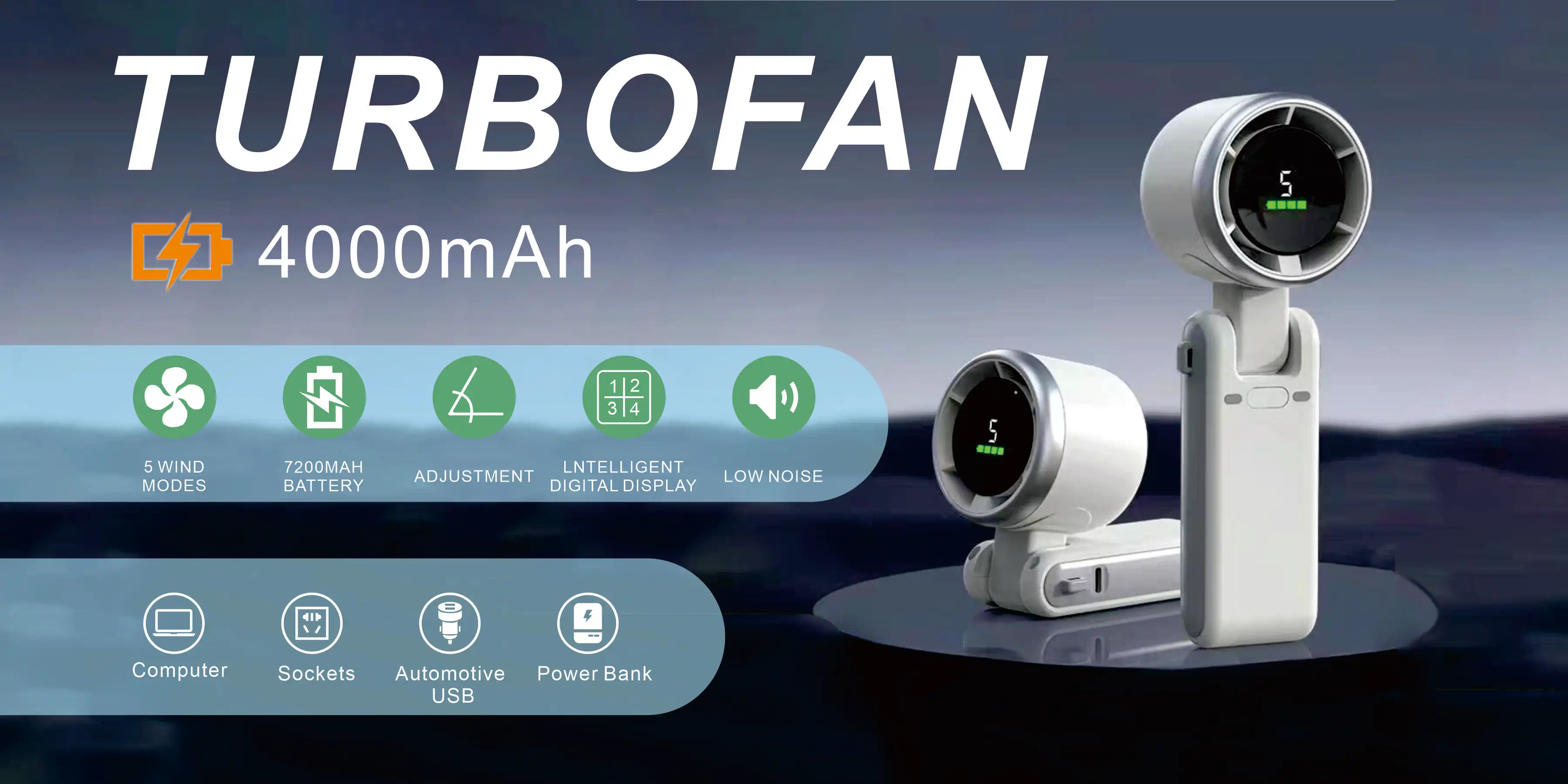 5-speed turbo fan – Experience personalized comfort through the adjustable wind speed setting of the handheld personal fan. We offer 5 wind speed settings ranging from gentle to strong winds, which you can adjust in any situation to meet your specific cooling needs.