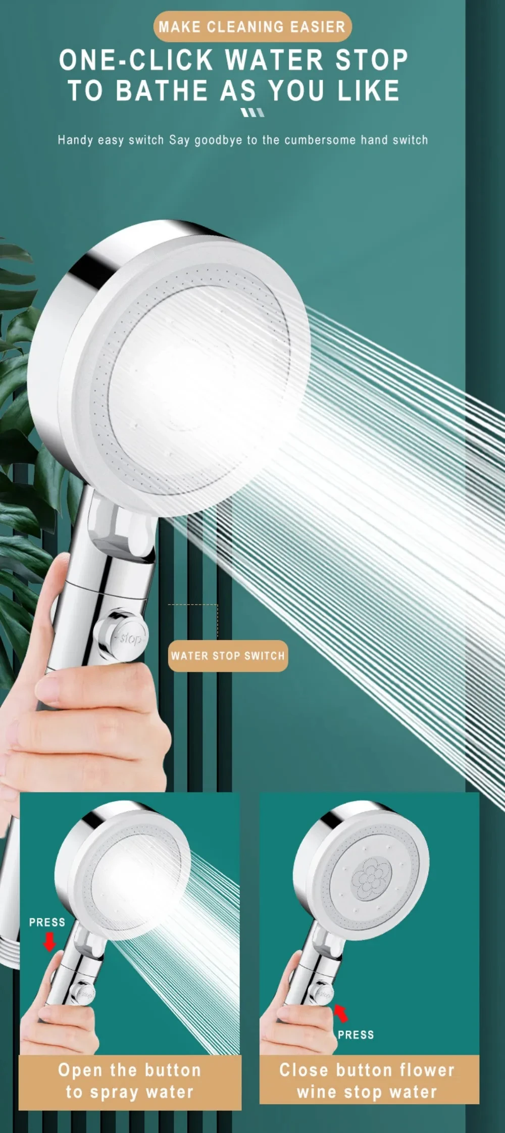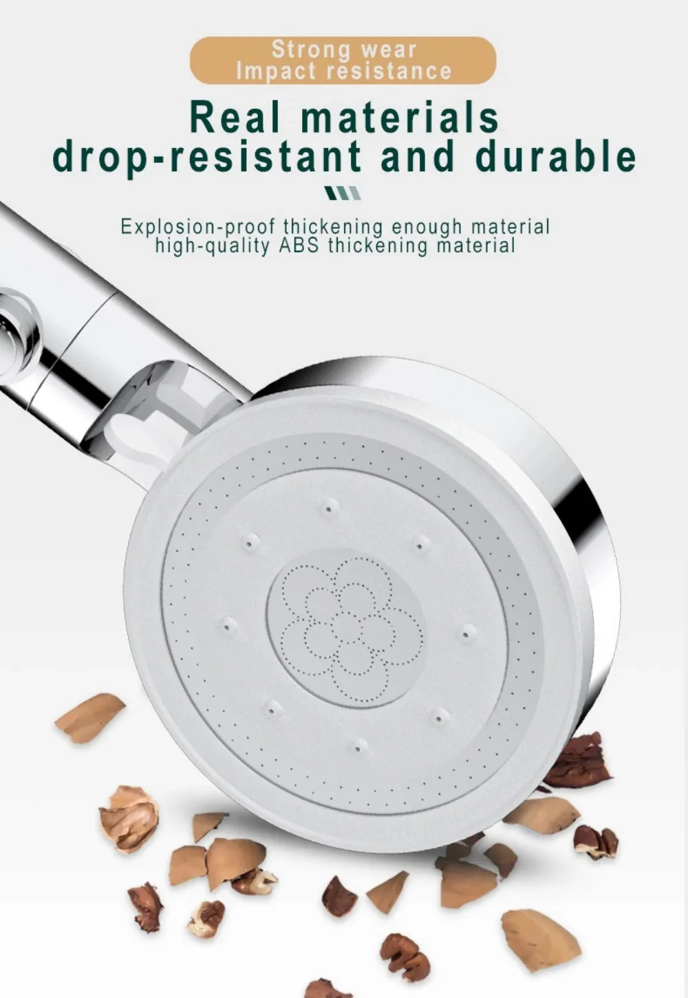 << High pressure shower head: High pressure and powerful shower water, provide great spray coverage,fine and smooth and brings you unforgettable showering experiences.