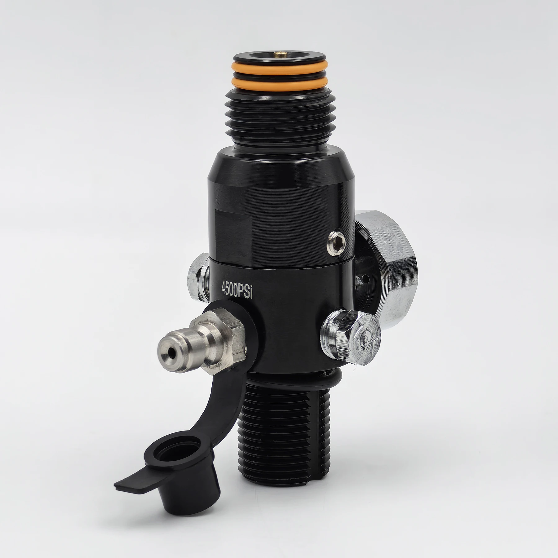 The regulator with output 2800psi and 3000psi, the gauge and fill nipple at a 90 degree angle.