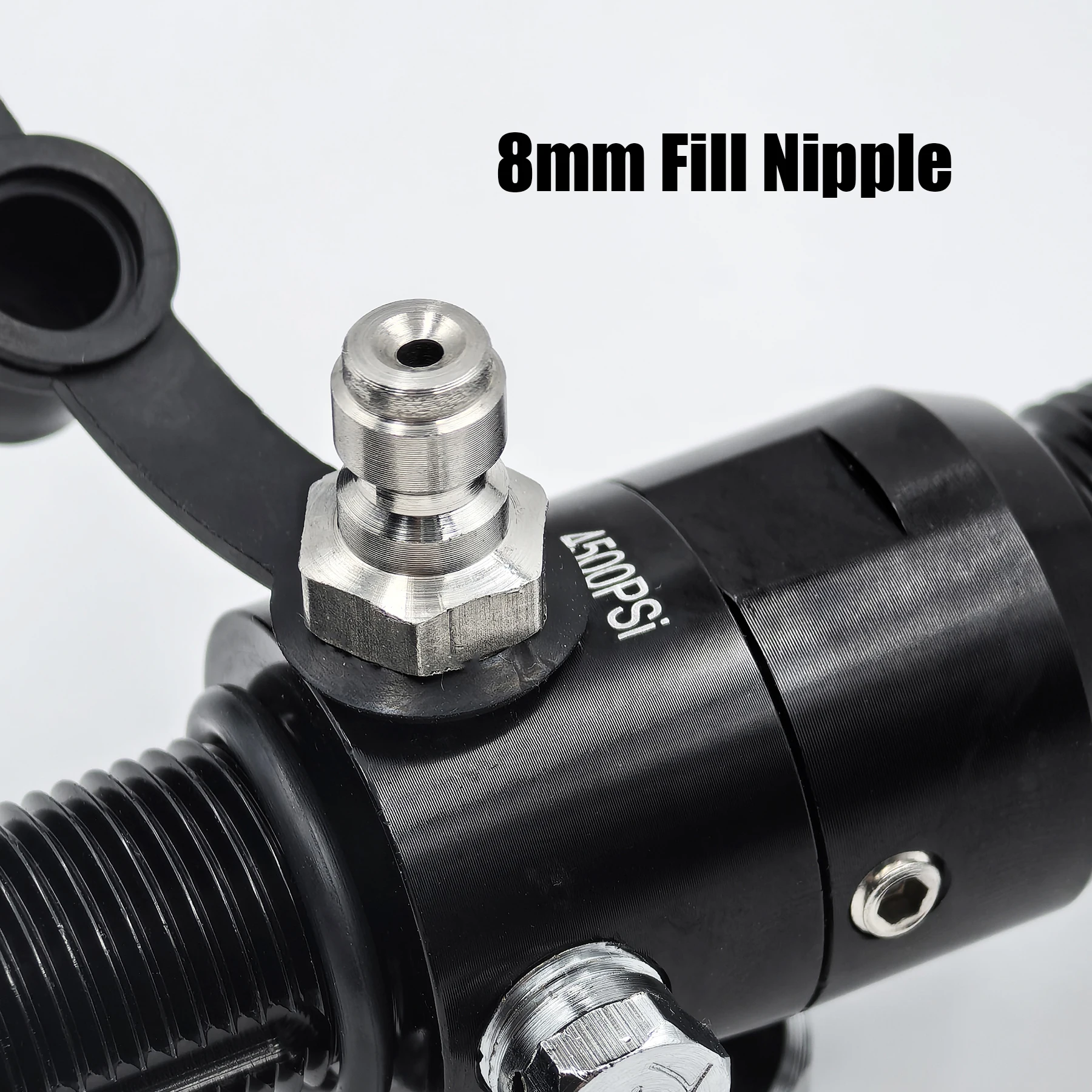 The regulator with output 800psi, 1200psi, 1800psi, 2000psi, 2200psi, the gauge and fill nipple on the same axis.