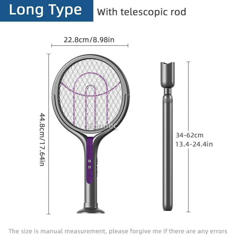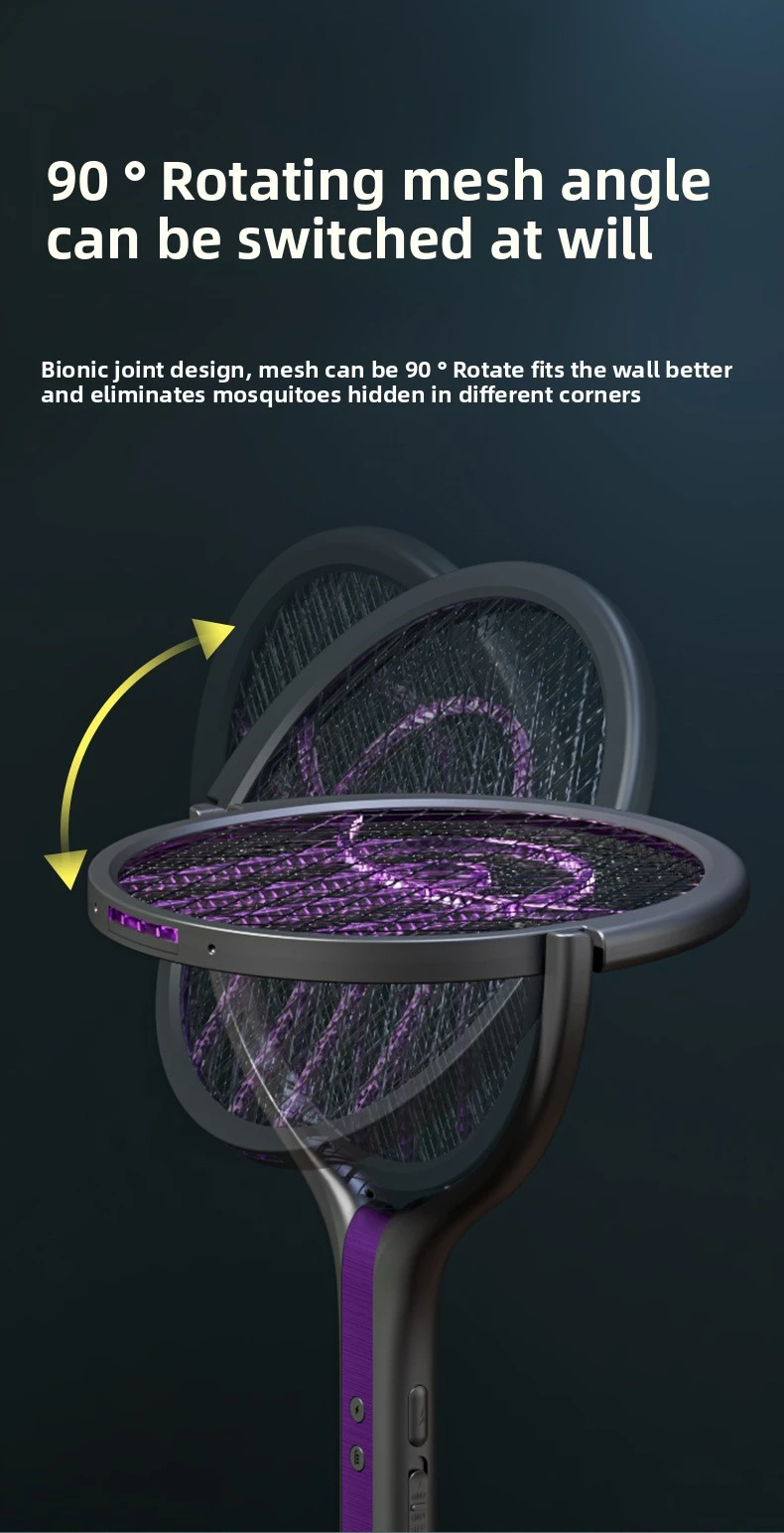 1. Innovative rotating head: Our electric fly swatter adopts a rotating head design, making it possible to easily capture insects from all angles and surfaces (including walls). You can also lock the rotating head so it swings through the air to catch flying insects, just like a traditional fly swatter.