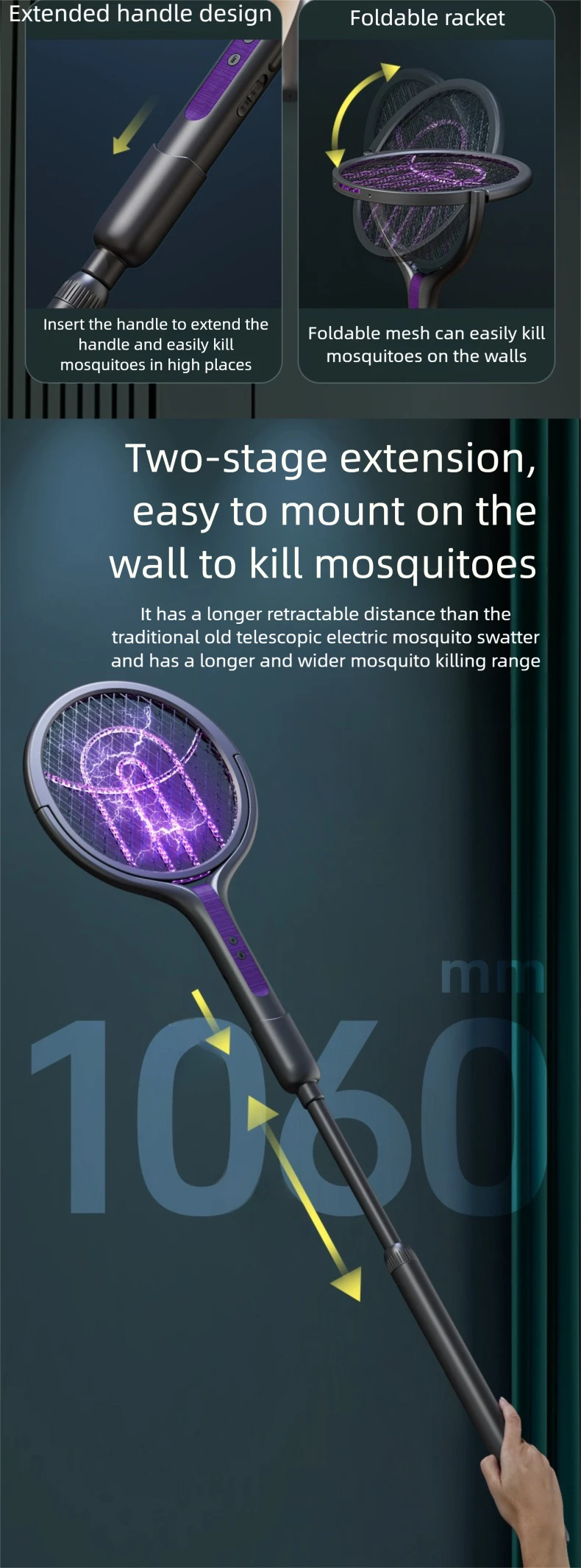 5. Multifunctional usage options: This multifunctional electric flytrap can adapt to any pest control scenario. Handheld, you can catch insects anywhere; stand up to attract insects; or fix them to the wall, which can be used as an efficient indoor pest control device.