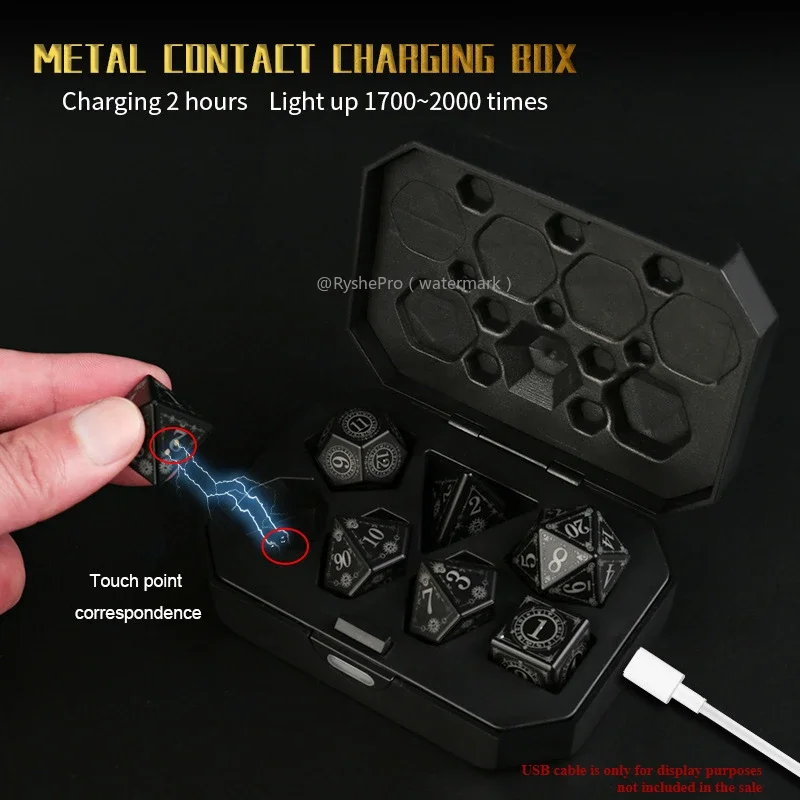 The glowing DND dice come with a charging case