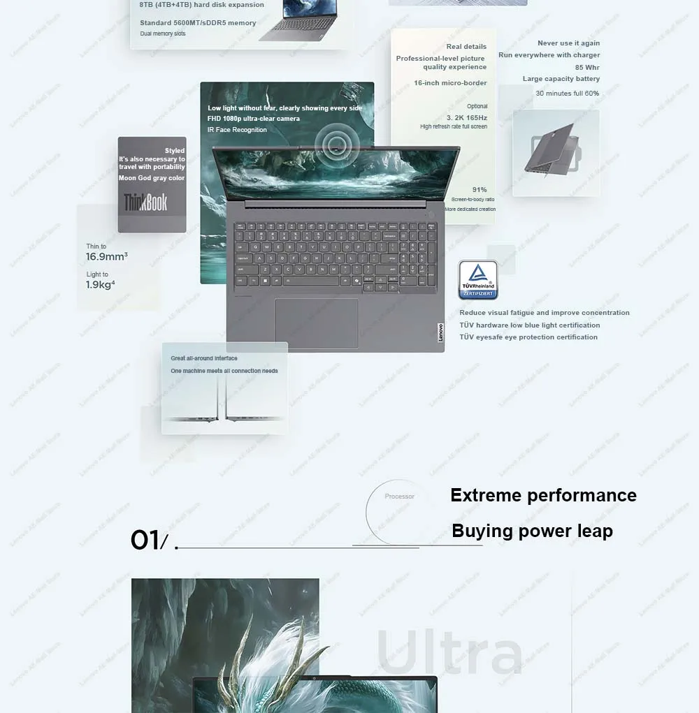 Lenovo 2025 NEW ThinkBook 16+ U5-225H/U7-255H/U9-285H 32G+1T 16-Inch 3.2K 165Hz Screen