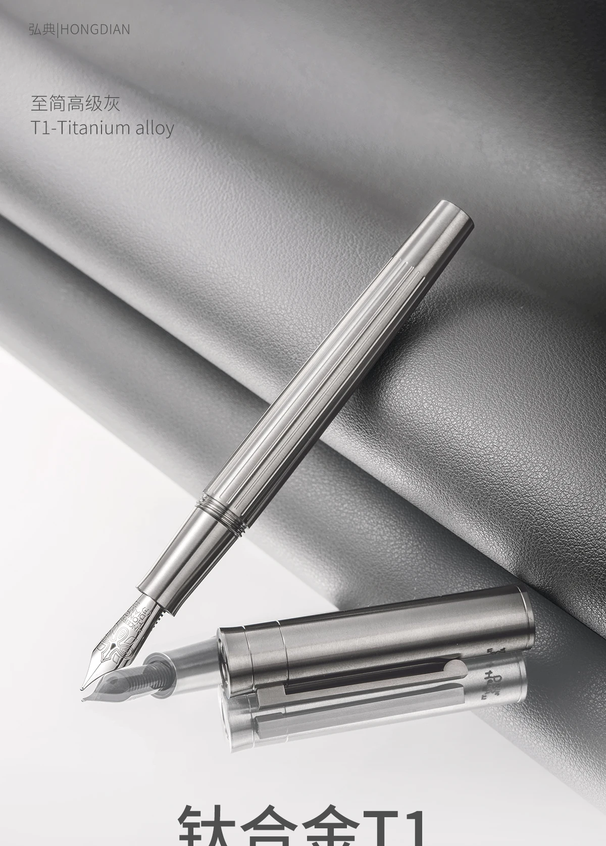 LT Hongdian Titanium Alloy T1 Fountain Pen Replaceable Cartridge Calligraphy Gift Box Business Student Sign Pen