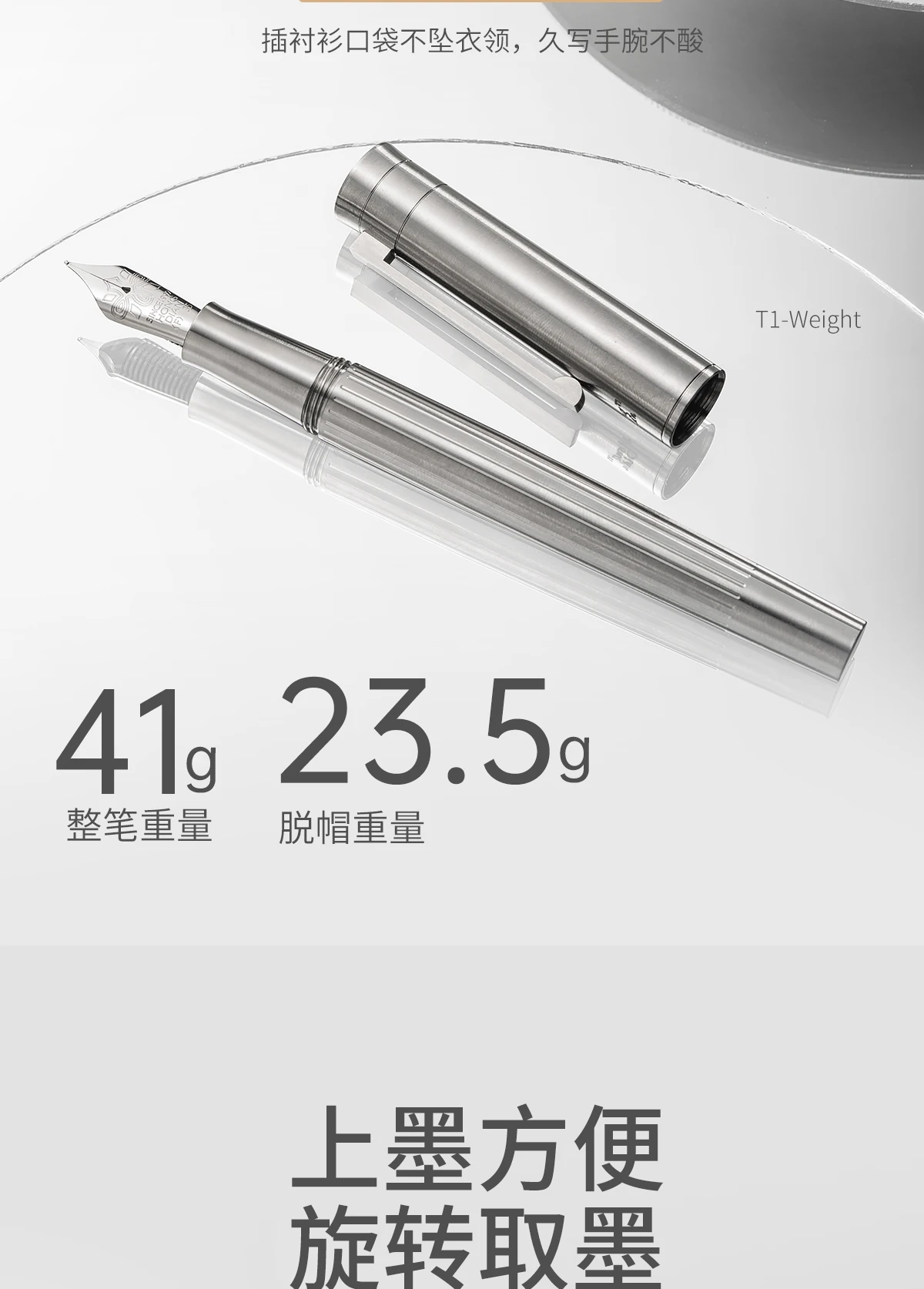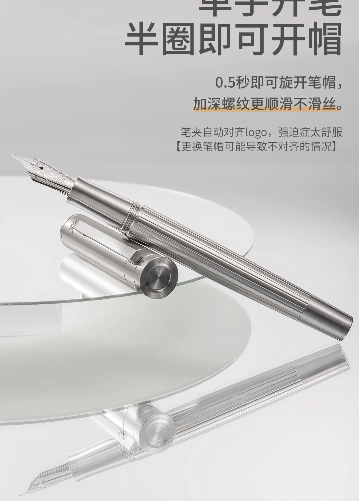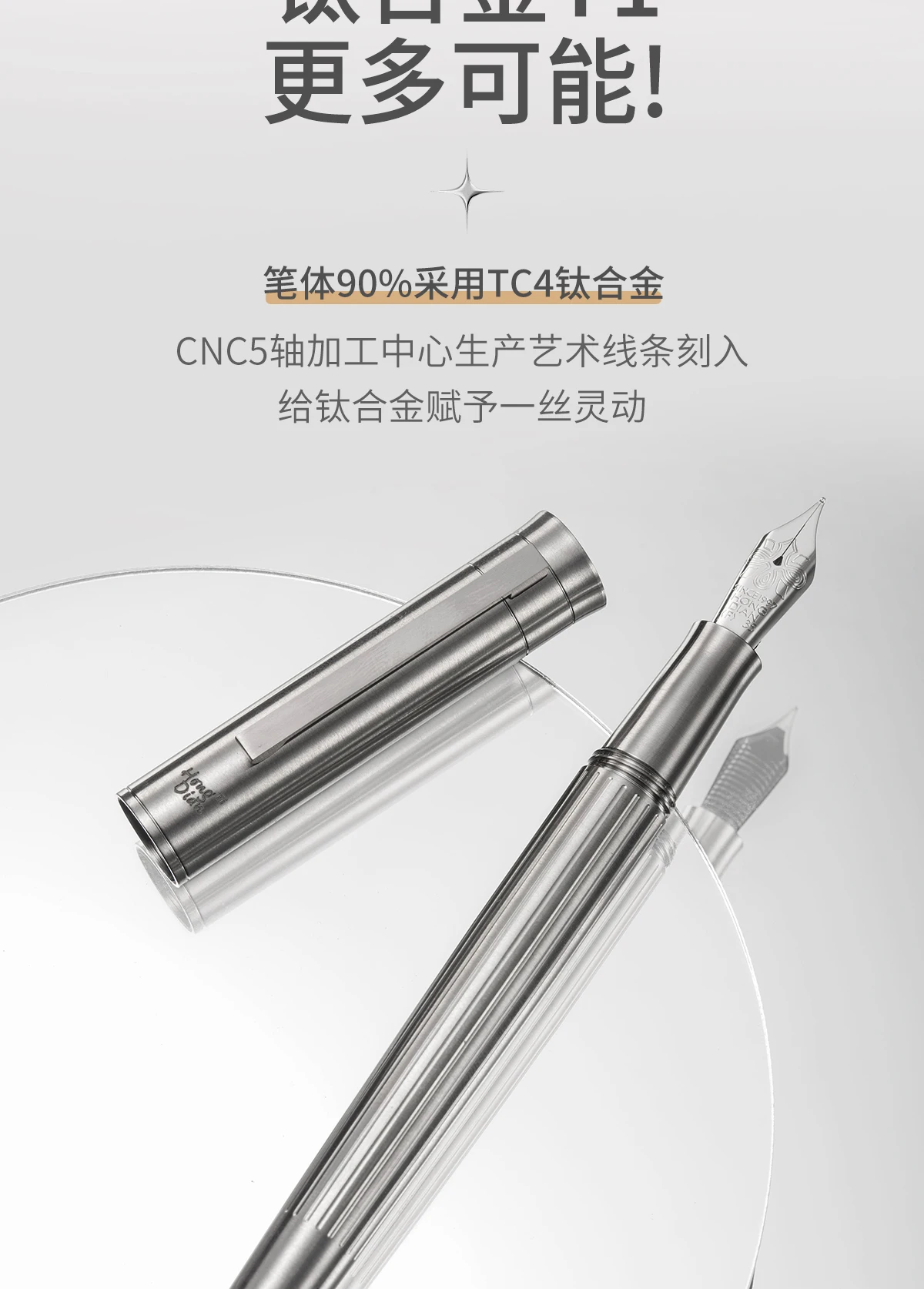 1.Hongdian T1 Titanium Fountain Pen 90% TC4 titanium alloy barrel Spring-loaded clip resists deformation