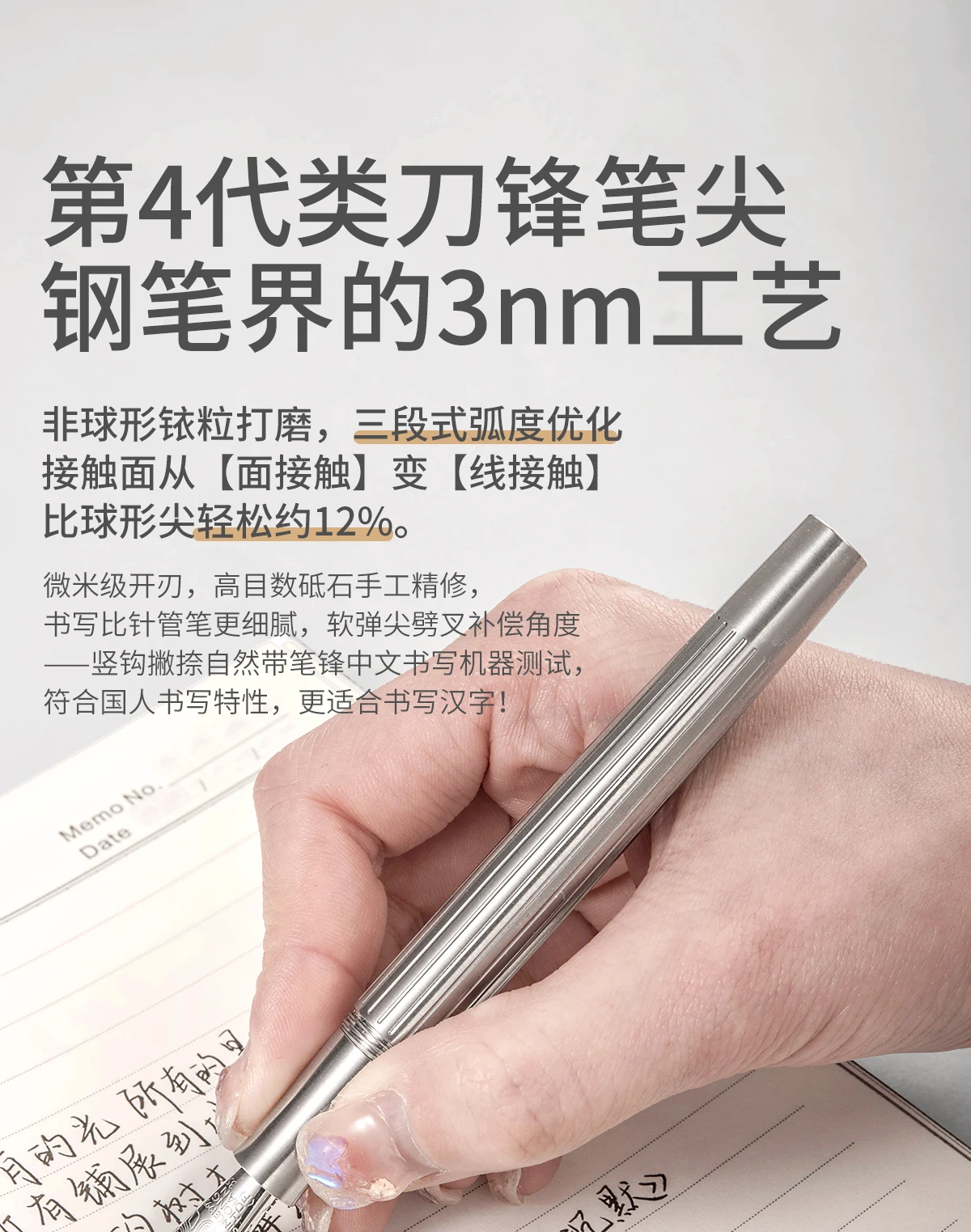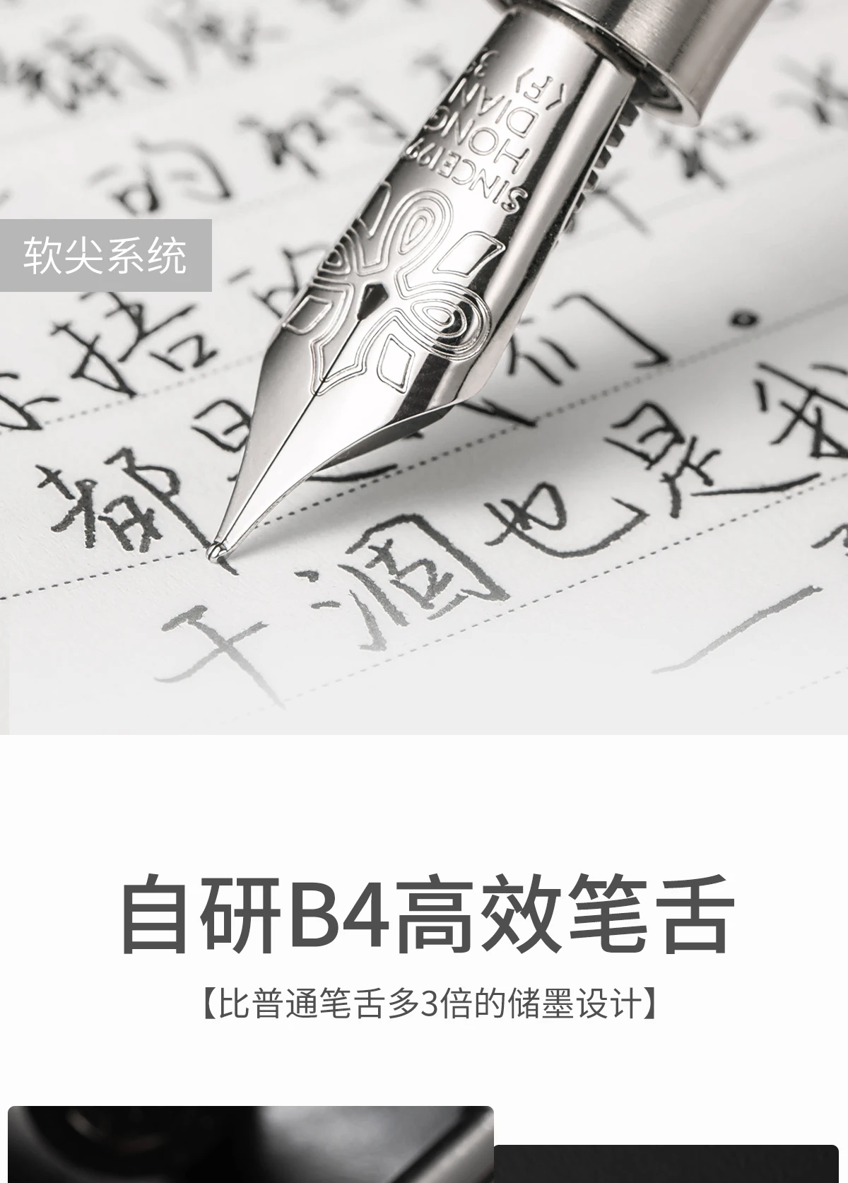 2.Oversized vs standard steel nibs for superior performance Paired with B4 in-house feed for flawless ink regulation