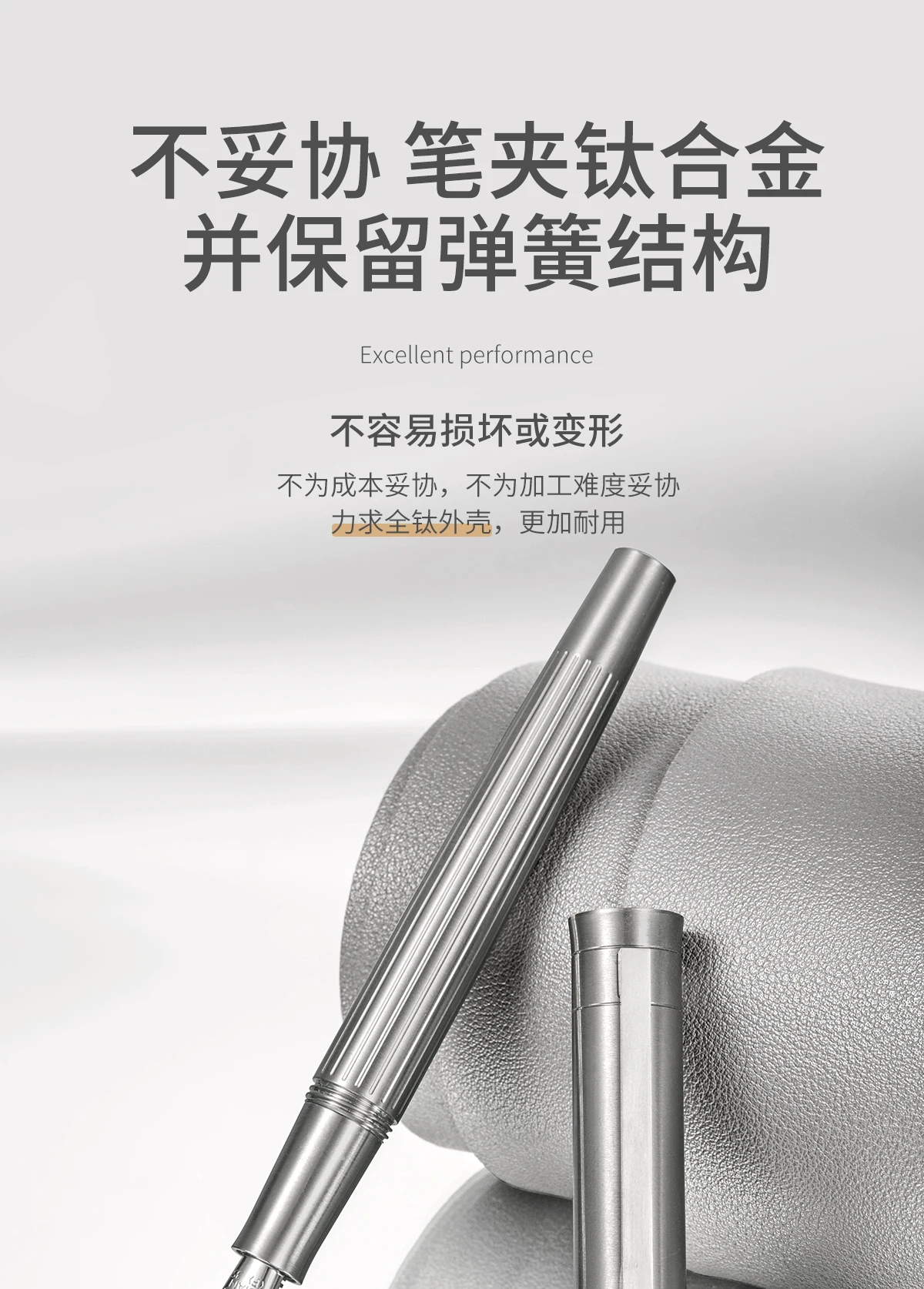 1.Hongdian T1 Titanium Fountain Pen 90% TC4 titanium alloy barrel Spring-loaded clip resists deformation