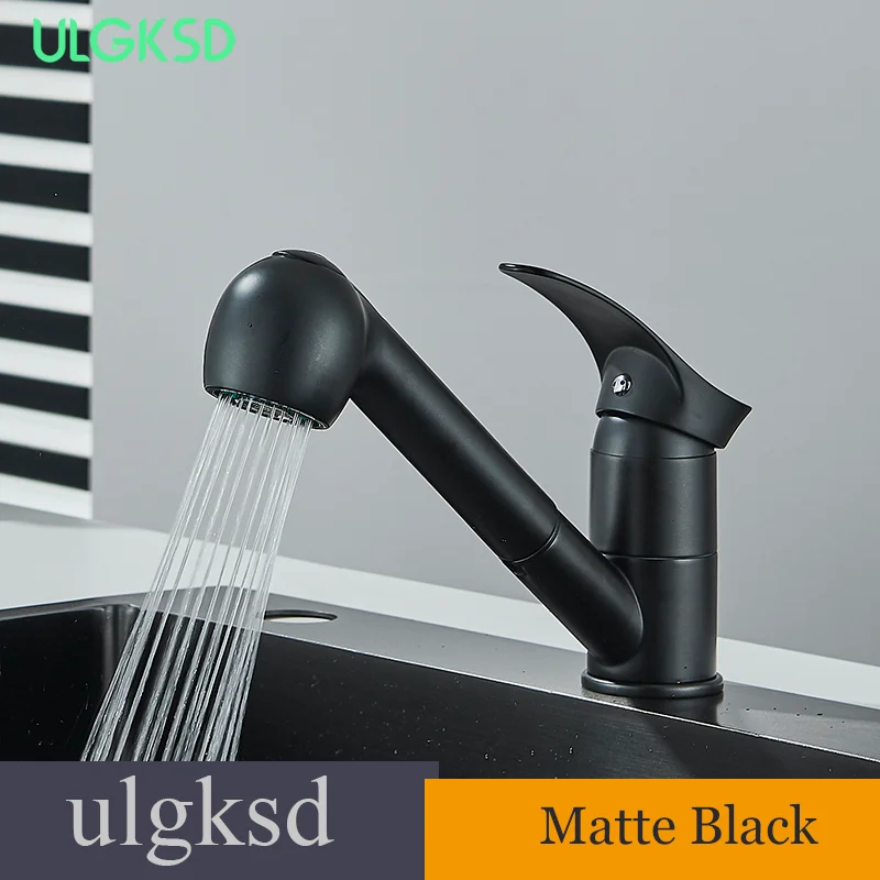Matte Black 360° Rotation Pull Out Brass Faucet Hot And Cold