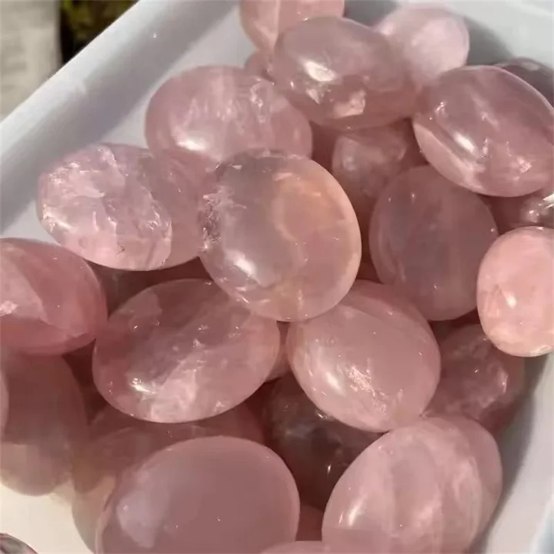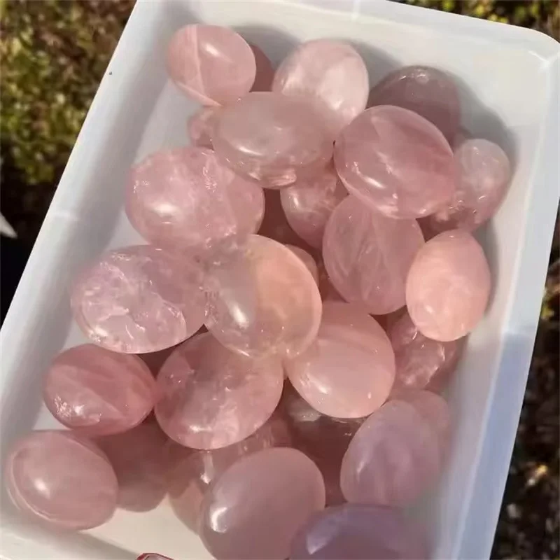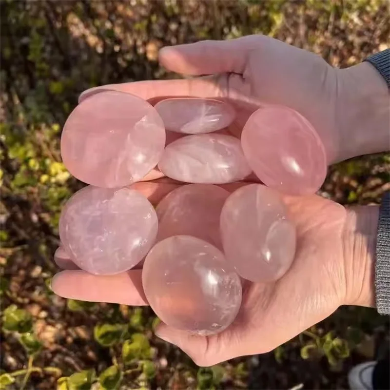 Natural Rose Quartz Polishing Geometry Irregular Ellipse Shape Pink Crystal Decompression Massage Toys Home Decor Stone Crafts