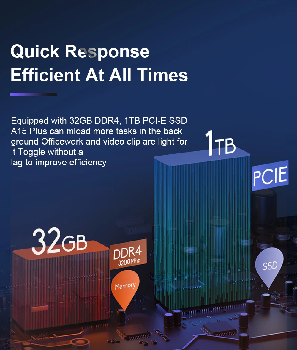 💾Efficient storage system: Equipped with 32GB DDR4 high-speed memory and 1TB PCIe SSD solid-state drive, whether loading large games, processing professional software or storing massive files, it can achieve a second-speed response, so that every step of your operation is smooth and unimpeded.