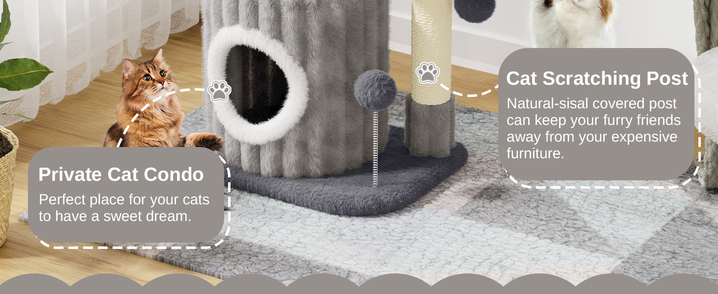 Versatile play and activity center: With two thick game balls, this cat tree becomes an exciting playground for your cat. Even if she is at home alone, she will have a great time thanks to the constant preoccupation with the balls. Her paws are always in motion, and the cat will be absorbed in her own games.