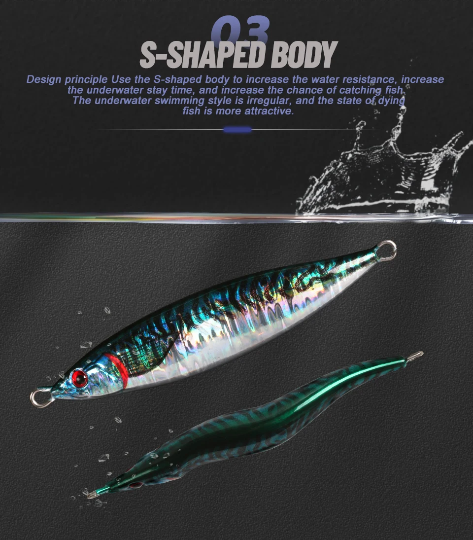 OBSESSION J81 160g 200g 300g 400g 3D Printing Laser S Shape Jigbait Boat Fishing Jigging Lure Metal Sea Fishing Pesca Jig Lures