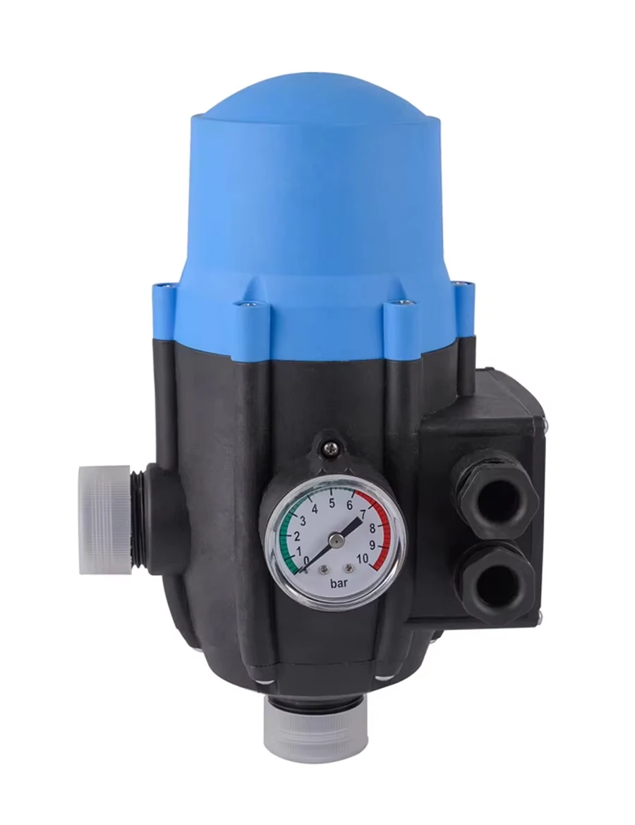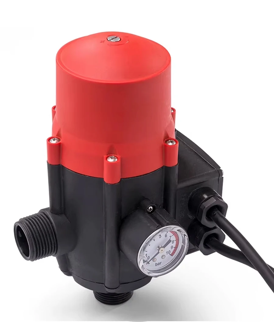 This water pump automatic controller is an intelligent water pump control device installed on the pipeline. It can start and stop the water pump according to the detected water source status, pipeline pressure change and other data. It can completely replace the traditional system composed of pressure tank, pressure switch, water shortage protection device, check valve four-way, etc. The special check valve device with patent protection can avoid surge phenomenon in the pipeline system. The pressure gauge can display the system pressure change.