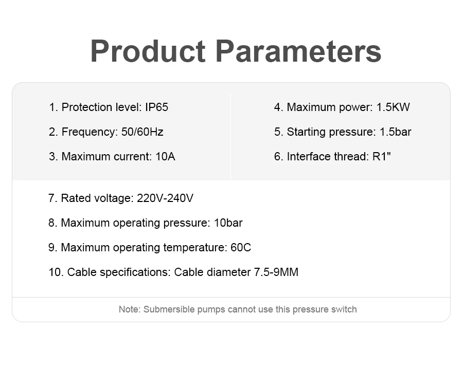 Note: Submersible pumps cannot use this pressure switch