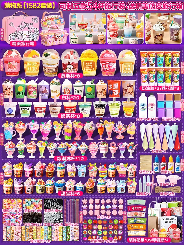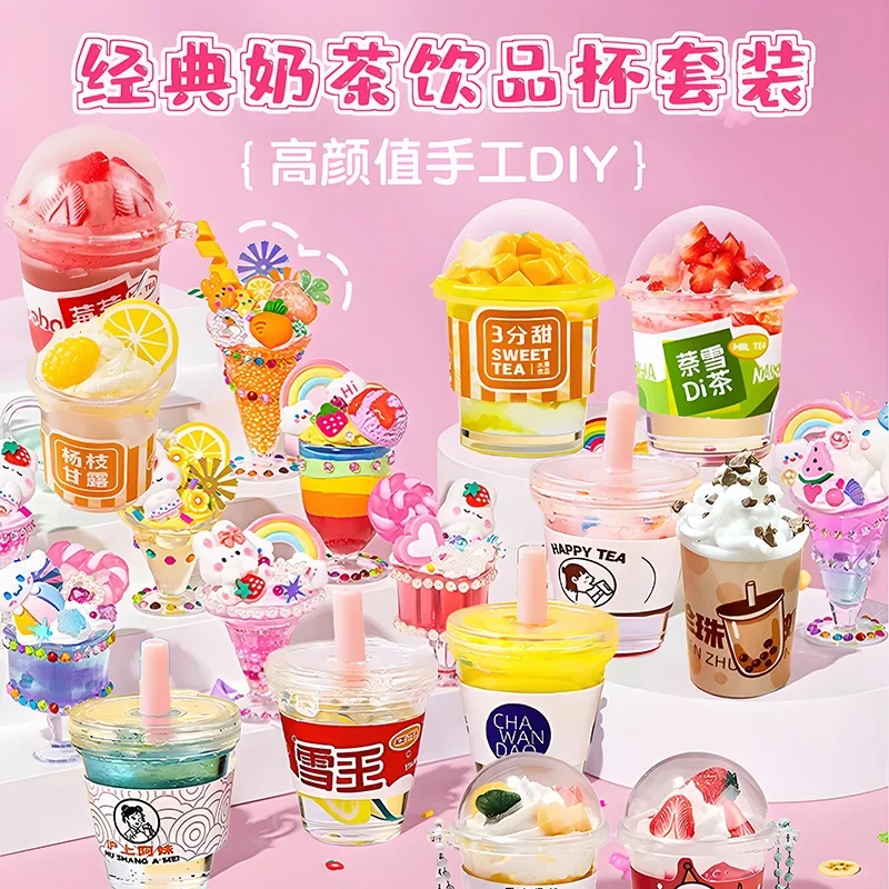 Simulate Cream Glue Guka Set Milk Tea Ice Cream Cup Diy Goo Card for Girls Handicraft Material Children’S Gift Toy Accessories