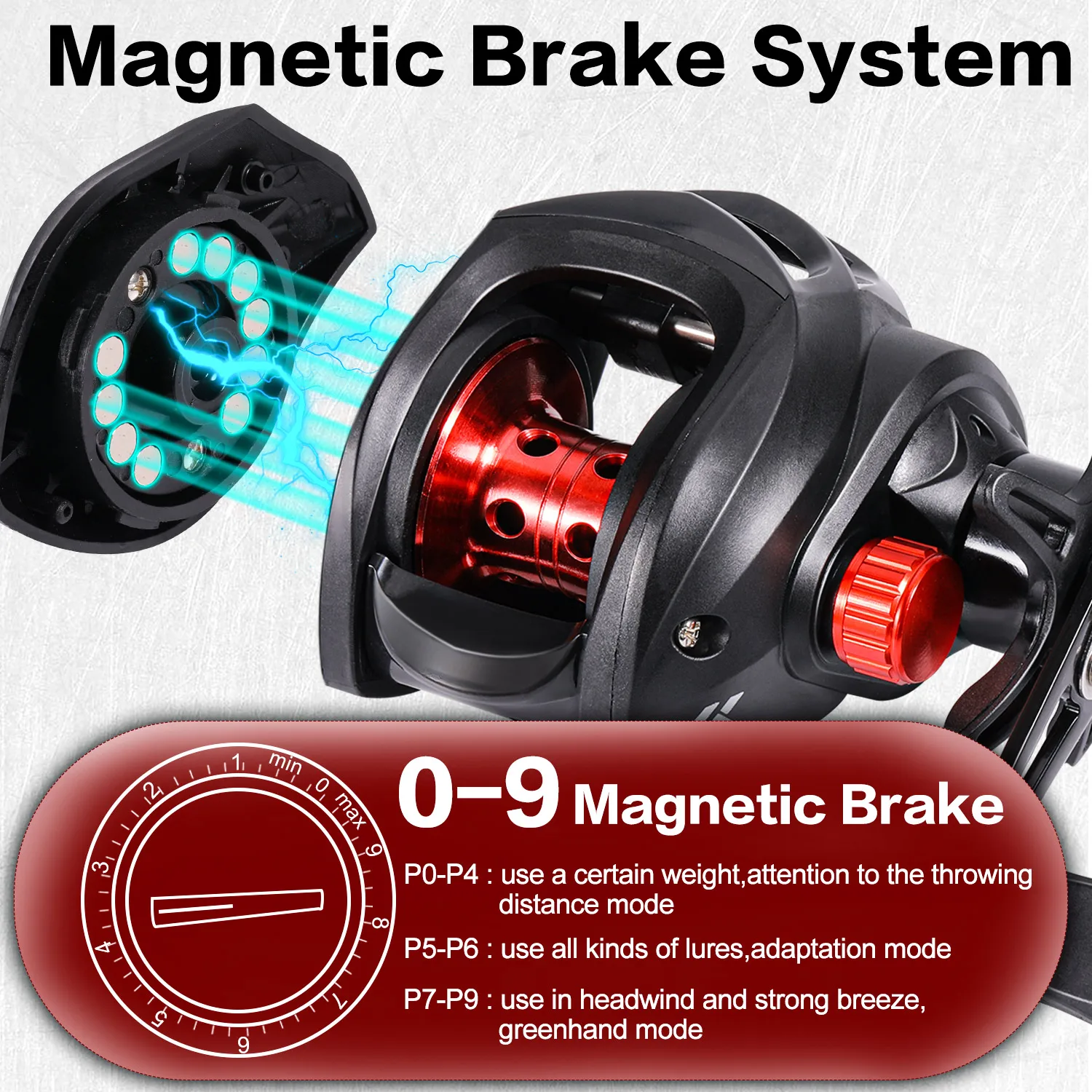 【2】 Magnetic brake intelligent: 0-9 speed magnetic brake, covering long-range, full bait, and upwind scenarios, with anti explosion line.