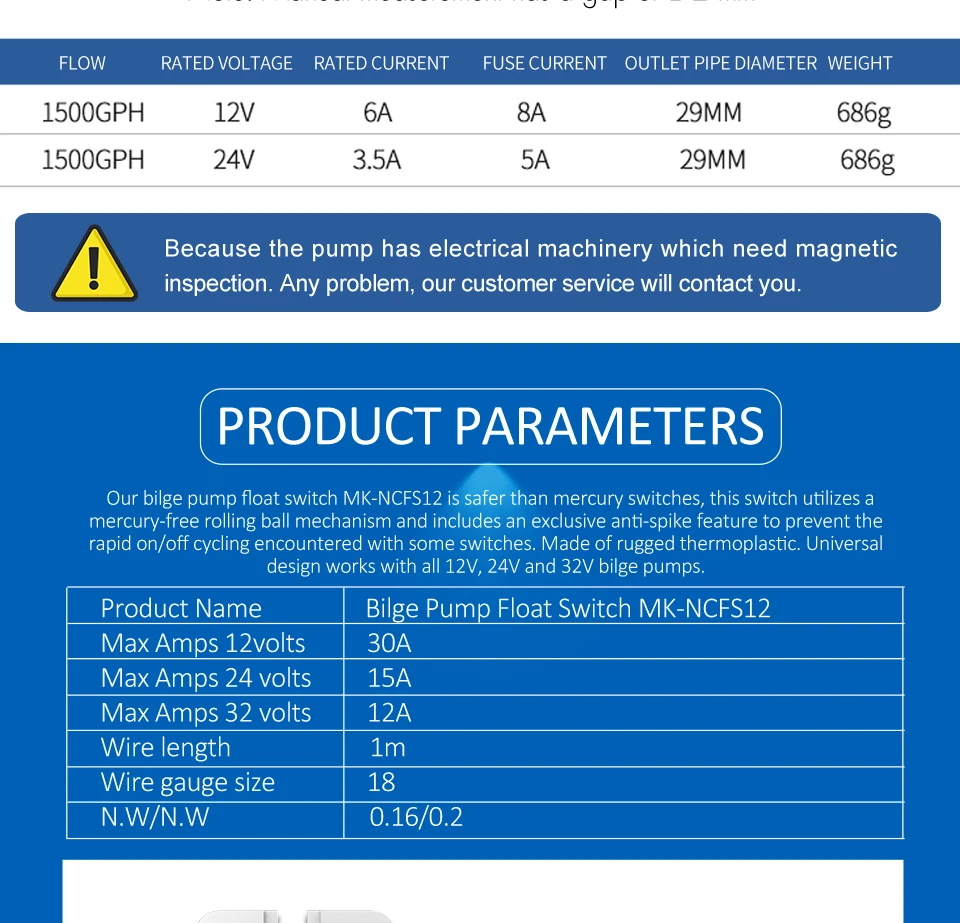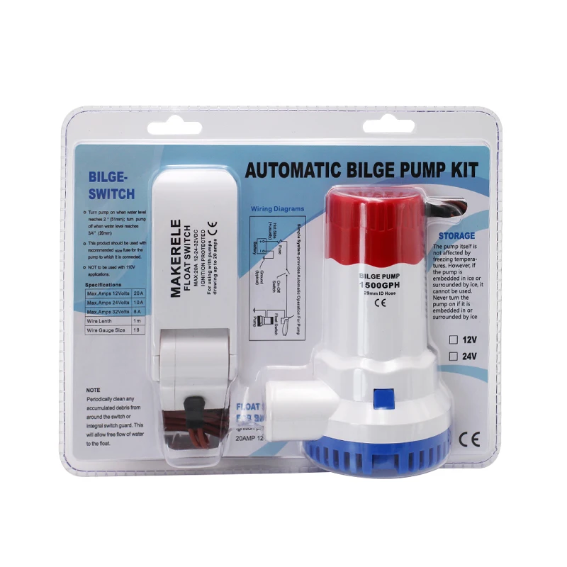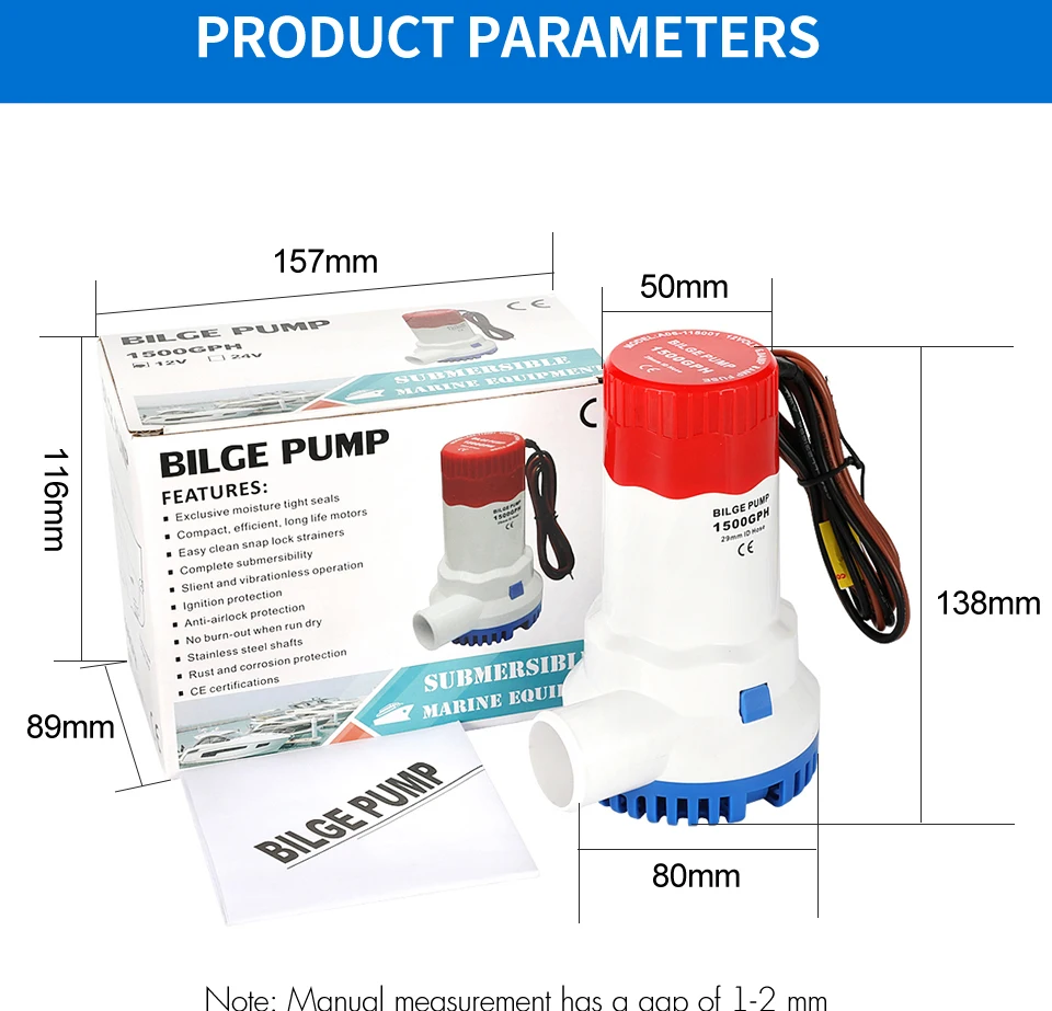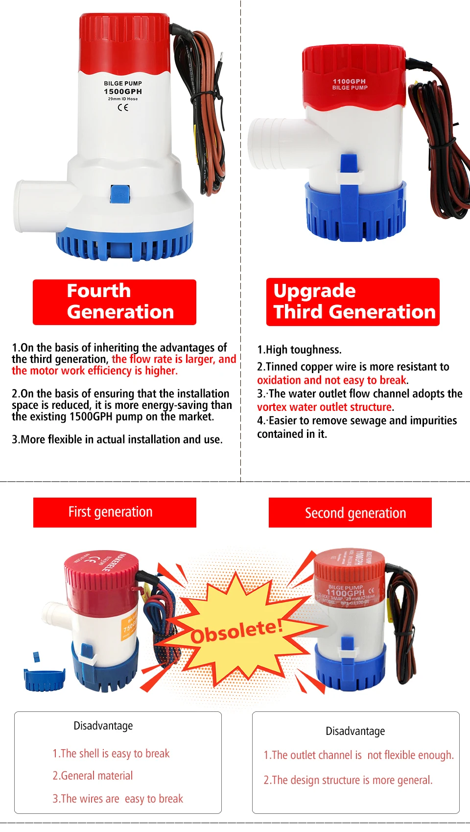 The Fourth Generation Bilge Pump 24/12VDC 1500/1100GPH Kit High Flow Power submersible water pump with switch for garden home
