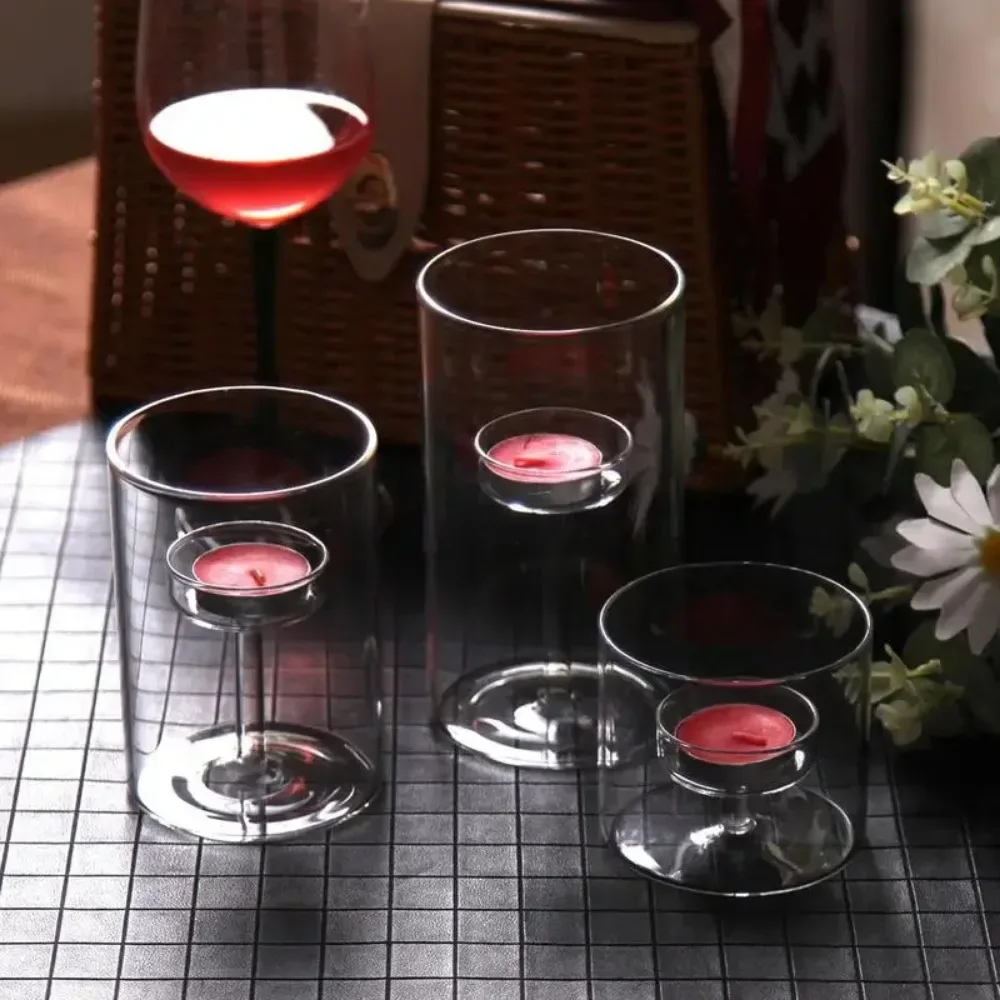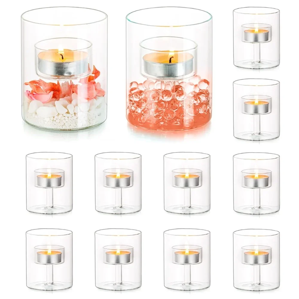 Transparent Glass Candlestick Cylinder Tea Light Candle Holders for Table Centerpieces Wedding Party Dining Room Decorations