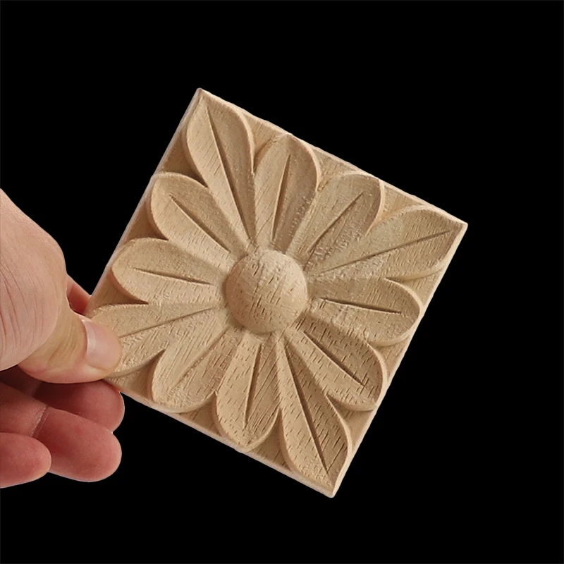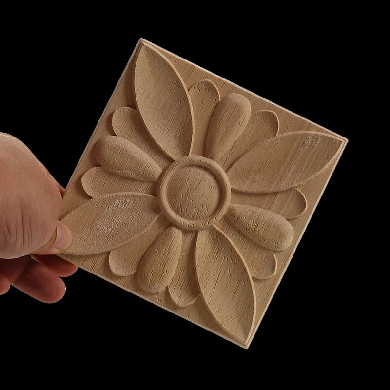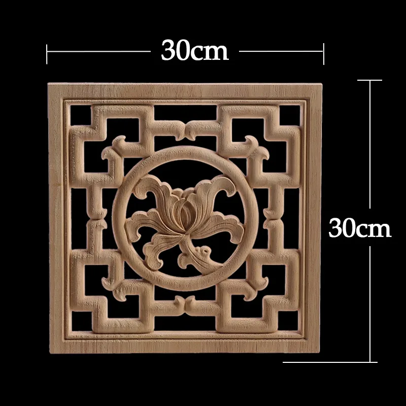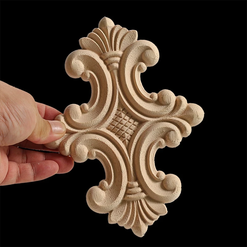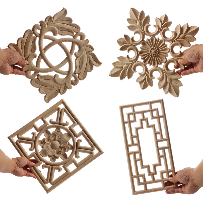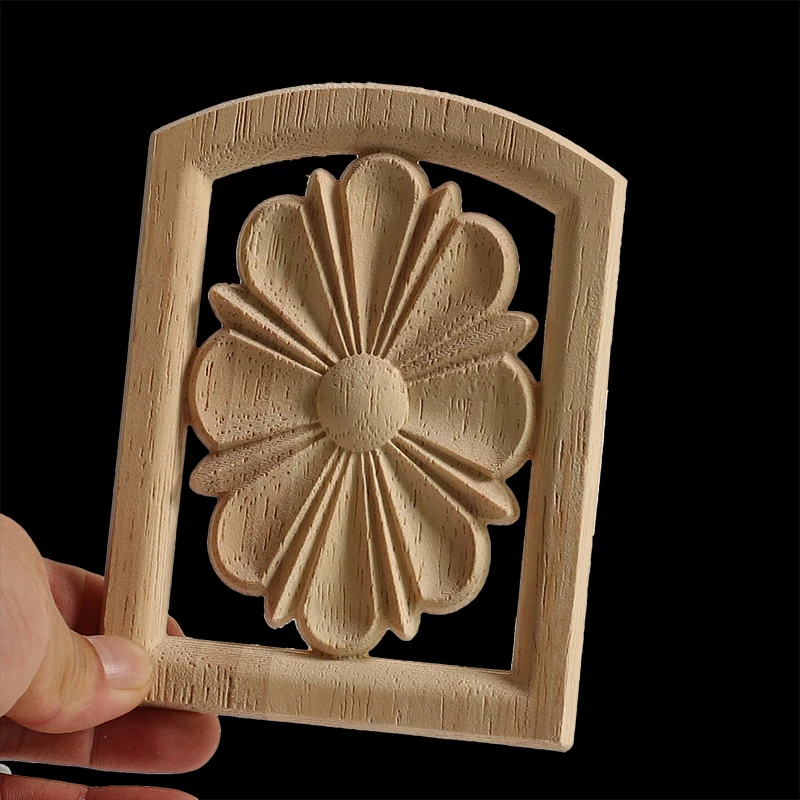 WMQE Unpainted Carved Exquisite Long Round Wooden Home Decoration Window Decoration Doors Wood Applique Wood Decal Wood Craft